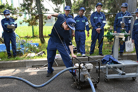 浦安市の職員が,災害時にこうした設備をスムーズに使用できるよう,取り扱い訓練を行いました。マンホールのふたを開け,貯水槽や給水栓にホースを接続するなど,日頃の業務とは異なる作業でしたが,いざというときに備えて一つひとつ手順を確認しました。