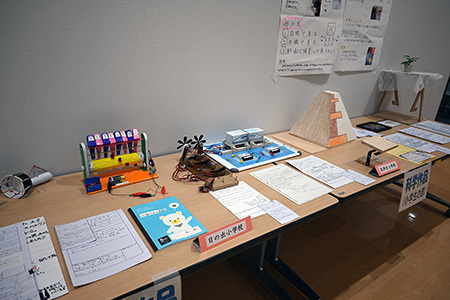 この催しでは,授業で習った科学の仕組みを利用した機械や,身近な自然を観察した論文,スマートフォンで使えるアプリなど,児童・生徒が日頃疑問に思ったことや興味・関心を持っていることなどを題材にした作品118点が展示されています。