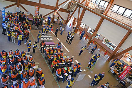この日は,暴風・大雨などにより水害が発生したと想定して,ボランティアの方々と,運営にあたる社会福祉協議会職員との連携を確認しました。