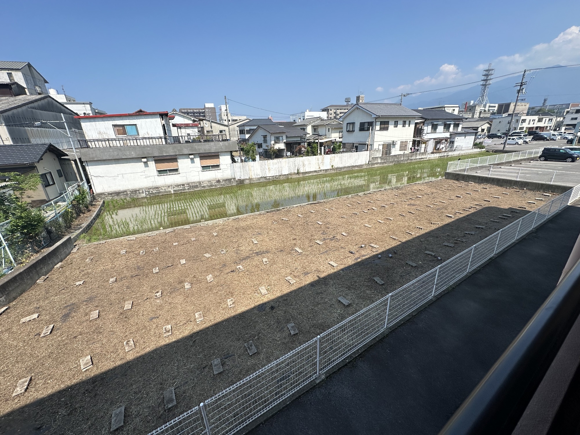 もともと駐車場予定地として確保されていた場所でしたが、未使用のまま季節が進み、雑草や雑木が伸び放題に。