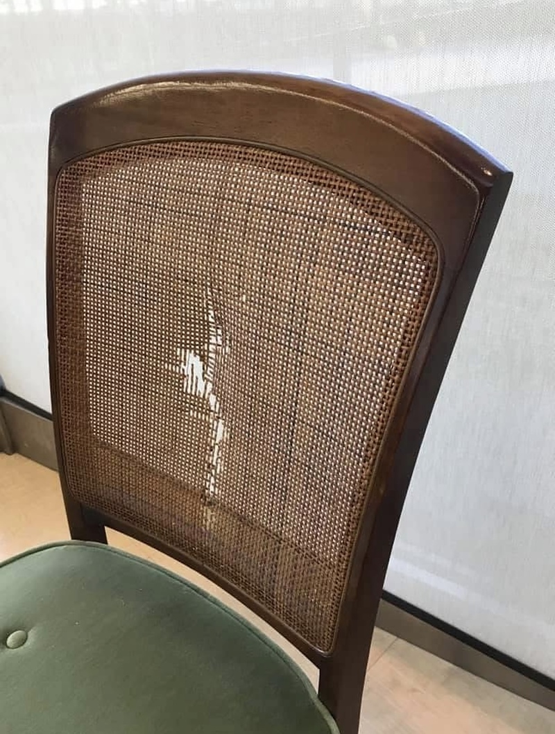 O様のレティーロチェアは、全部で6脚お持ちです。そのため、ほかの椅子の籐シートの色とあまり違いが出にくいように考えて作業しています。