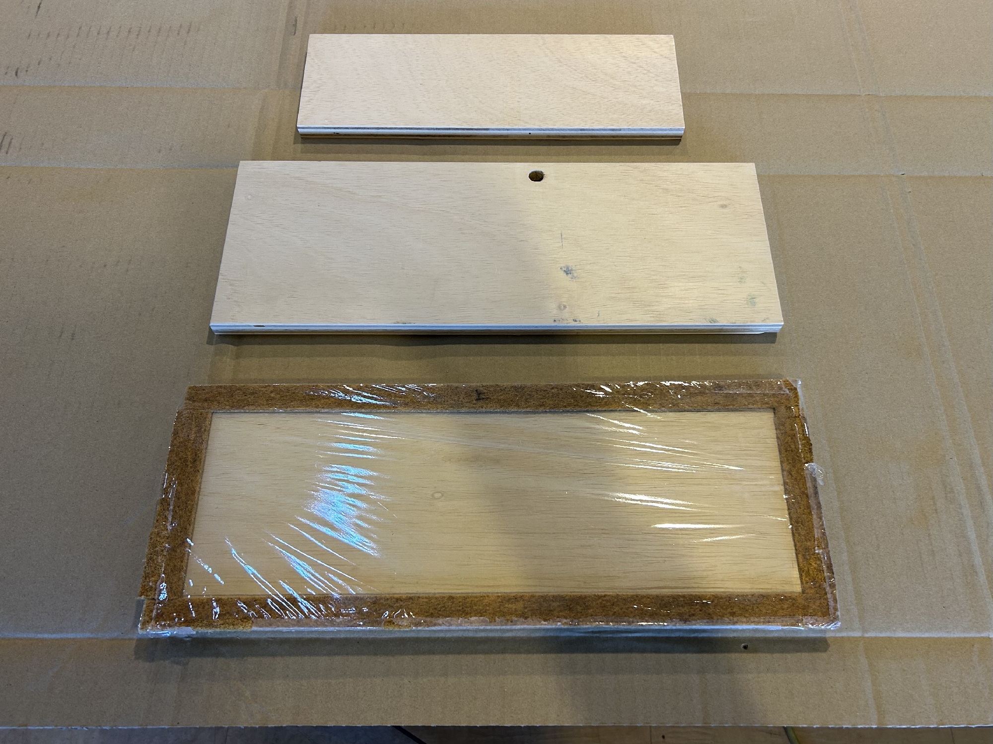 前板が平面ですと、ふつうの合板を切っただけで良いのです。
