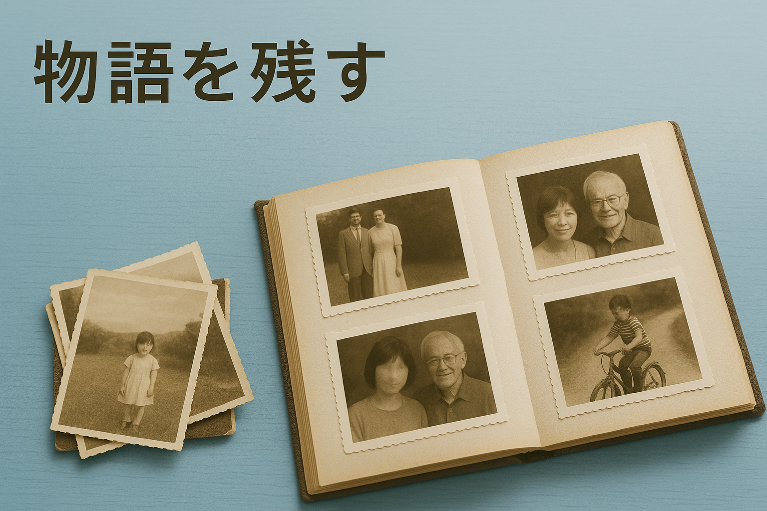 アルバムの中やバラバラの写真を取り出し、「残したいもの」を選び、簡単なコメントを書き添えるだけでも価値が生まれます。