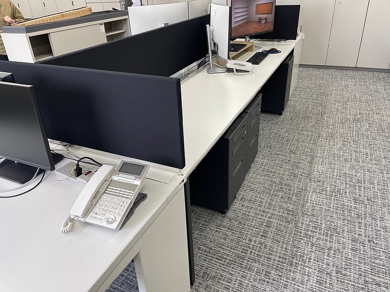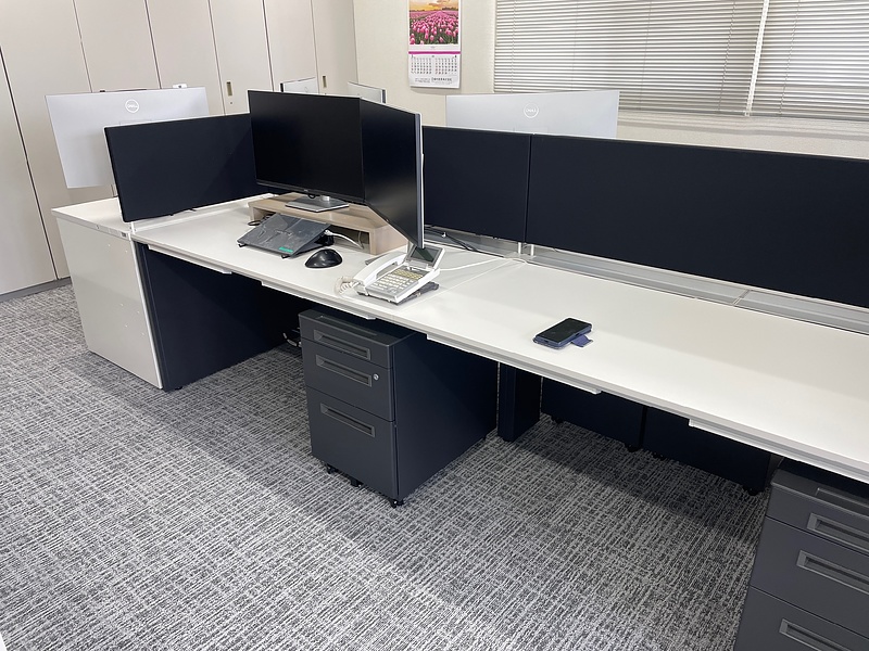 FNRユニットデスクに両袖50X配線機能付システムデスクの構成です。