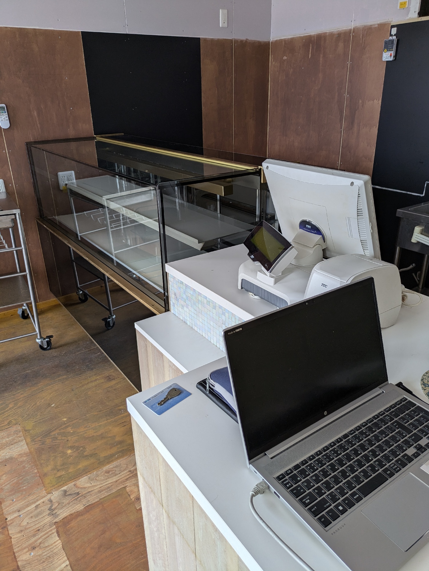 仮店舗へ、POSレジを移設、既存店舗は、NTT電話装置、光回線など