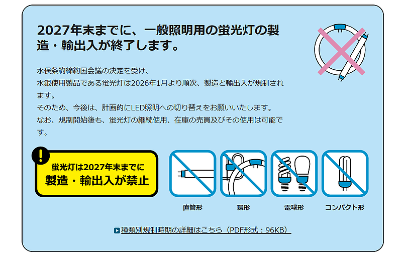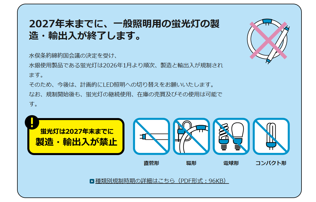 2027年末までに、一般照明用の蛍光灯の