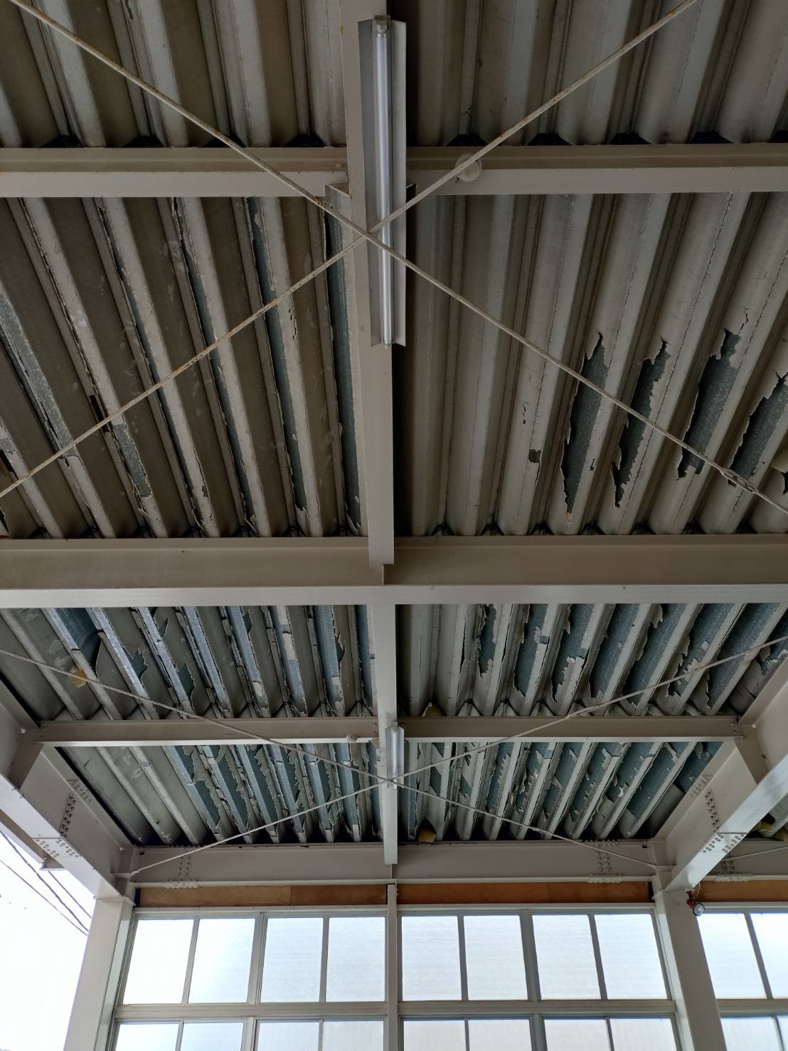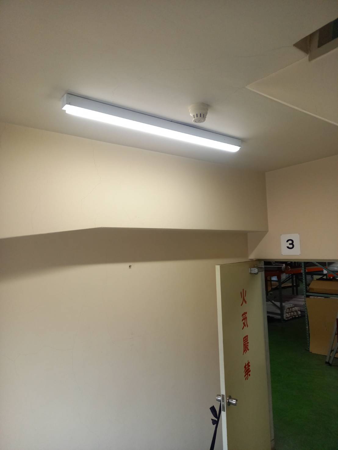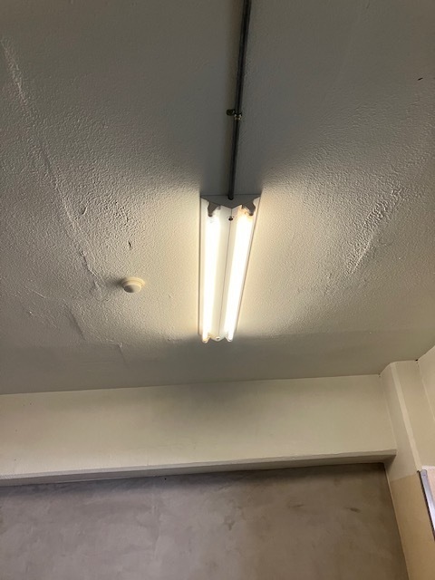 倉庫のLED交換(交換前と交換後)