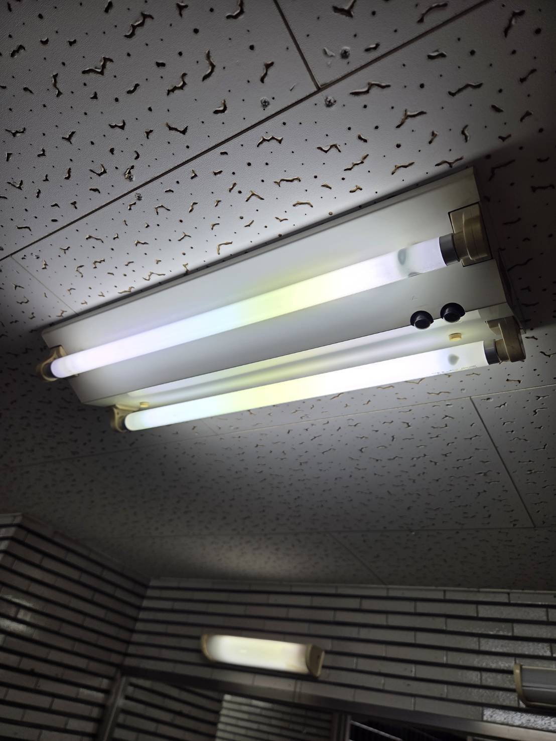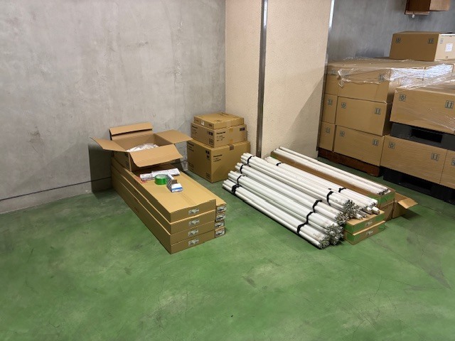 古い蛍光灯は、一部既存部分の補修用部品として保管します。