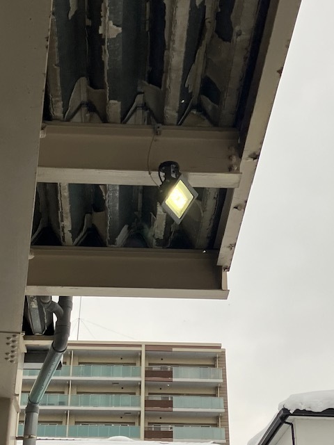 1階屋外の投光器交換(交換前と交換後)