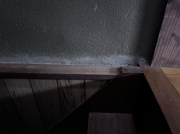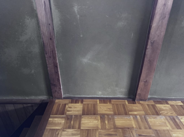 二階部分は聚楽壁になっており階段部分より壁が下がっています。