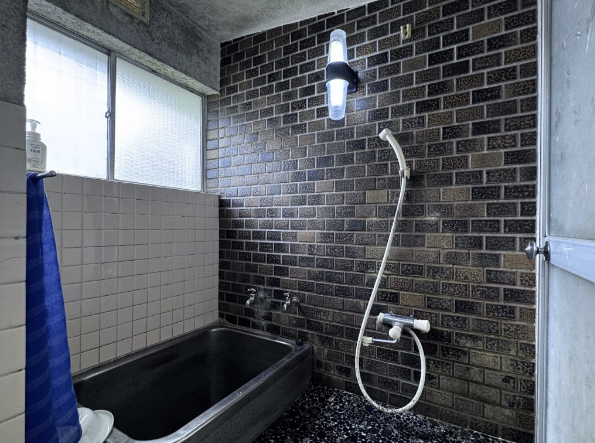 昔ながらのタイル張りの浴室です。