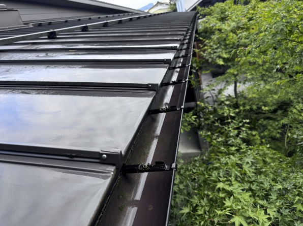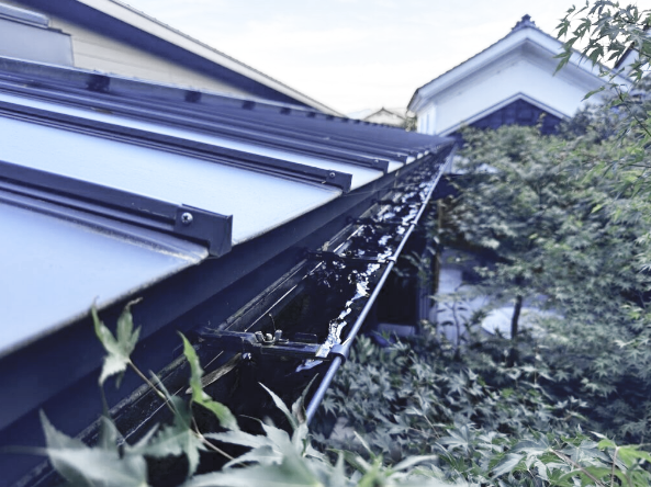 梯子で屋根に上ってみると雨どいに藻の様なものがびっしり溜まっていて