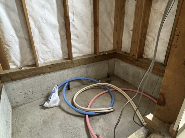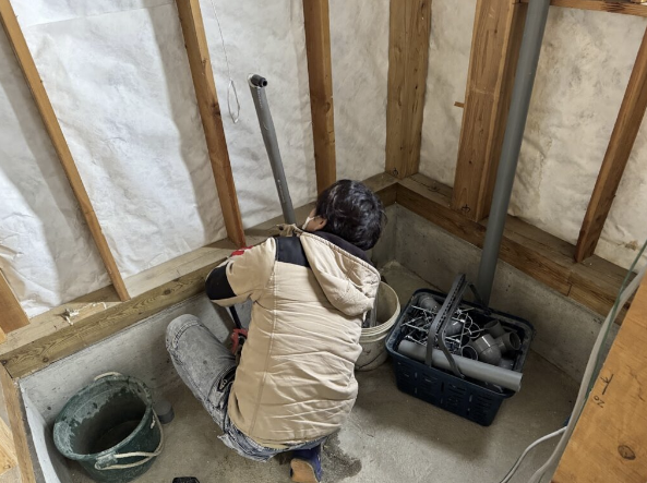 H様邸のお風呂工事、今日は配管工事を行いました。