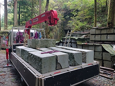 笏谷石の代替品としても使用されている、石川県の大杉石を取りに