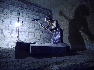 中の壁面には、当時のつる(手掘り)の跡が綺麗に入っていて、当時の様子が