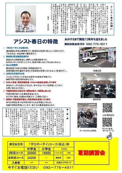 アシスト春日は「教育格差をなくす」をひとつのコンセプトに掲げています。