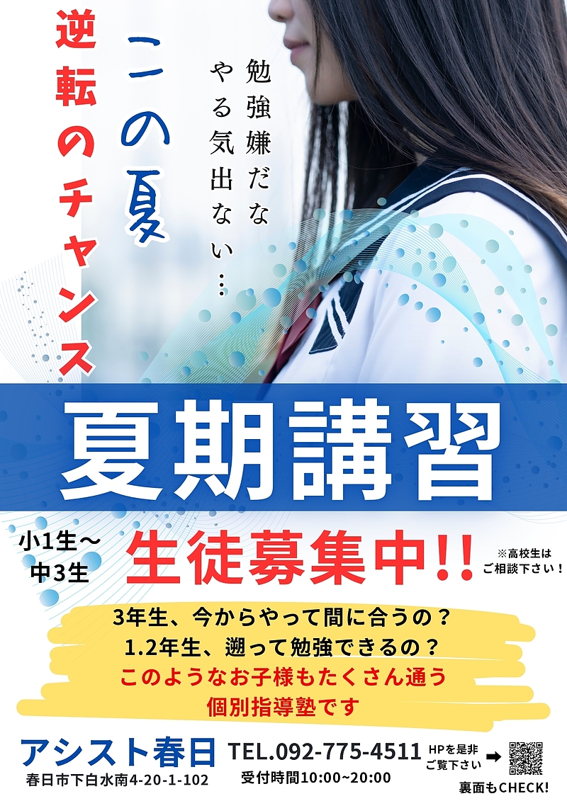 -----------------------------------------------アシスト春日では、無料体験を随時受け付けております!