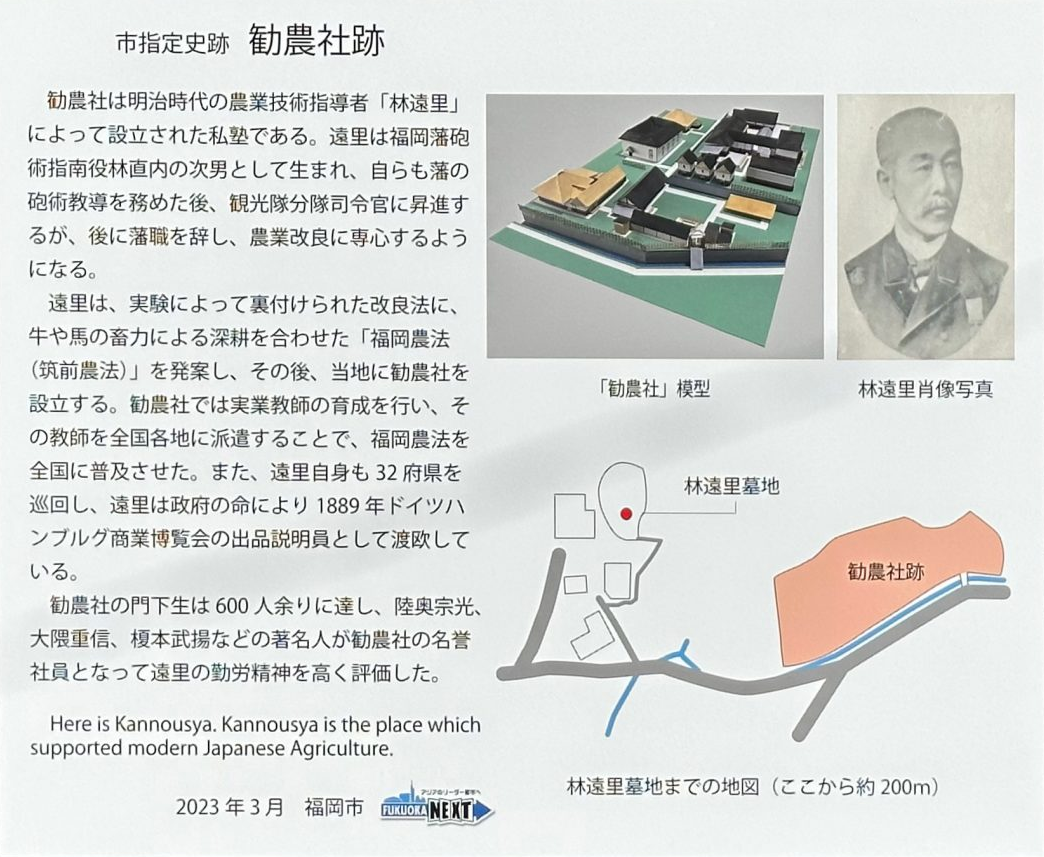 福岡市早良区には、勧農社の跡地 が福岡市指定遺跡として保存されています。