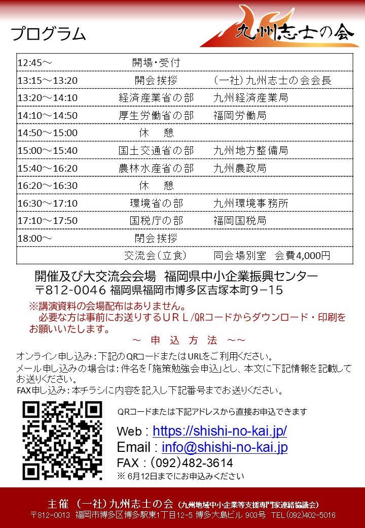 主催:一般社団法人 九州地域中小企業等支援専門家連絡協議会(略称:九州志士の会)