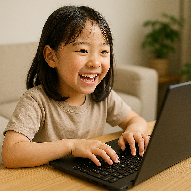 パソコンを見つけると早速、孫たち(小学5年生と3年生)は飛びつきタイピングを始めました。