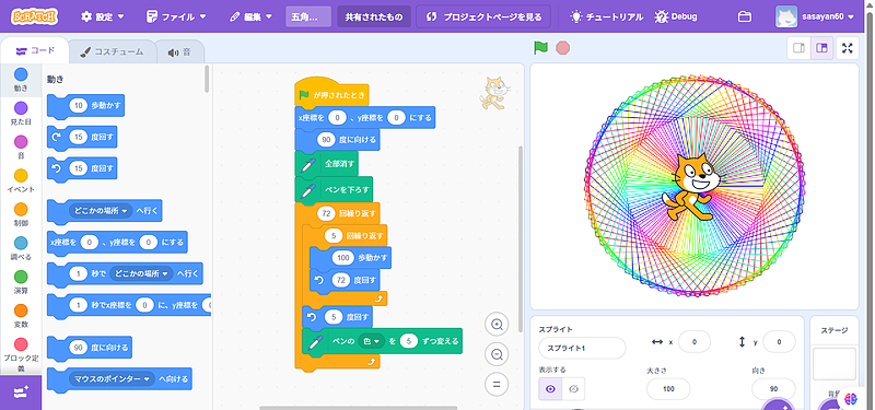 実は私自身、過去にスクラッチで作品を作ったことがあります。その作品を久しぶりに開いてみたのですが、プログラムの一つひとつを見返すと、「当時の自分はこんな工夫をしていたのか」と懐かしさと新鮮さが入り混じった気持ちになりました。