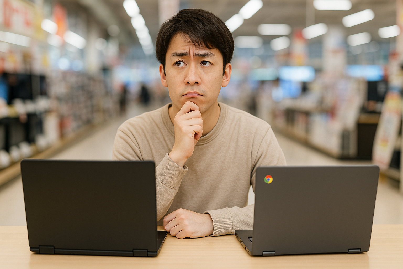 家電量販店などで「パソコン」と「クロームブック」を見かけたとき、