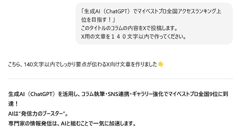 ■ 3. SNS連携 ― ChatGPTがすぐに“拡散用テキスト”を作ってくれる