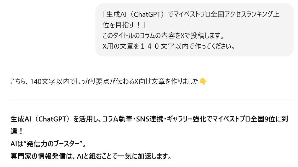 ■ 3. SNS連携 ― ChatGPTがすぐに“拡散用テキスト”を作ってくれる