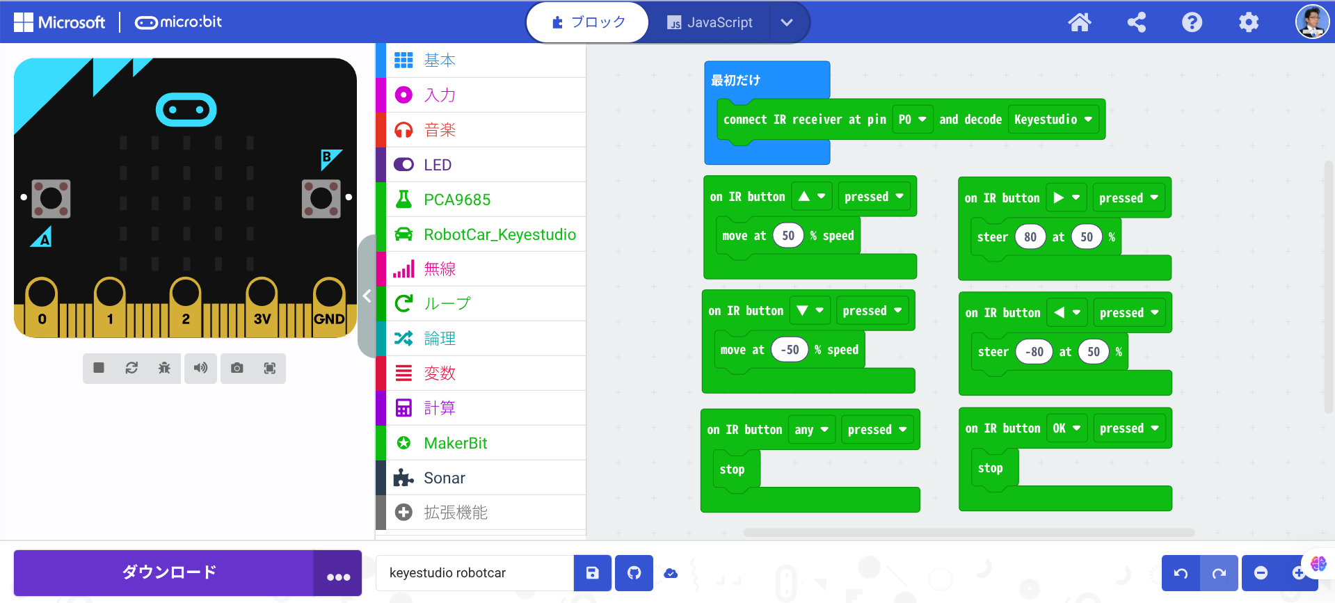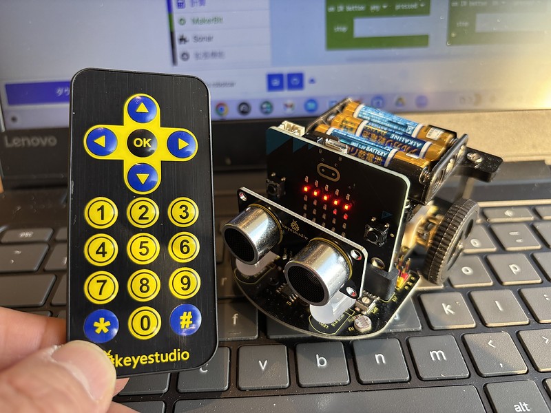 ロボットカーに最初から付属している専用リモコンで動かしてみることにしたのです。