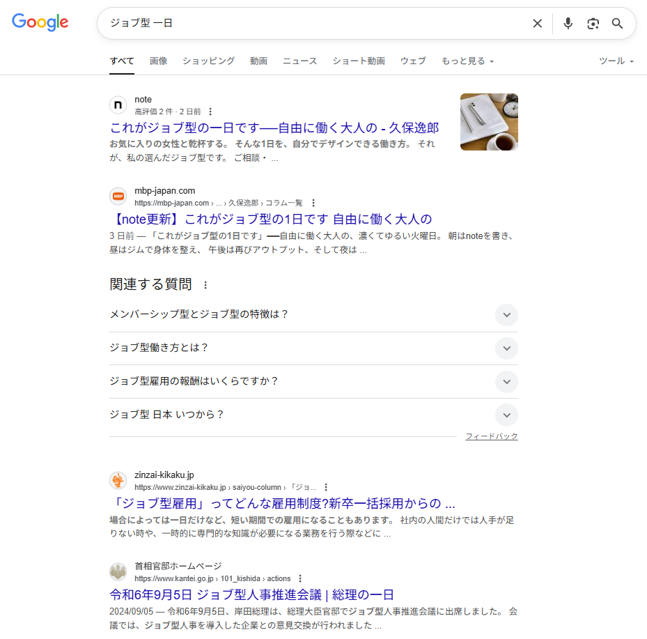 「ジョブ型 × 複業」では1位・3位・4位を独占するなど、複数のキーワードで上位表示を獲得しています。