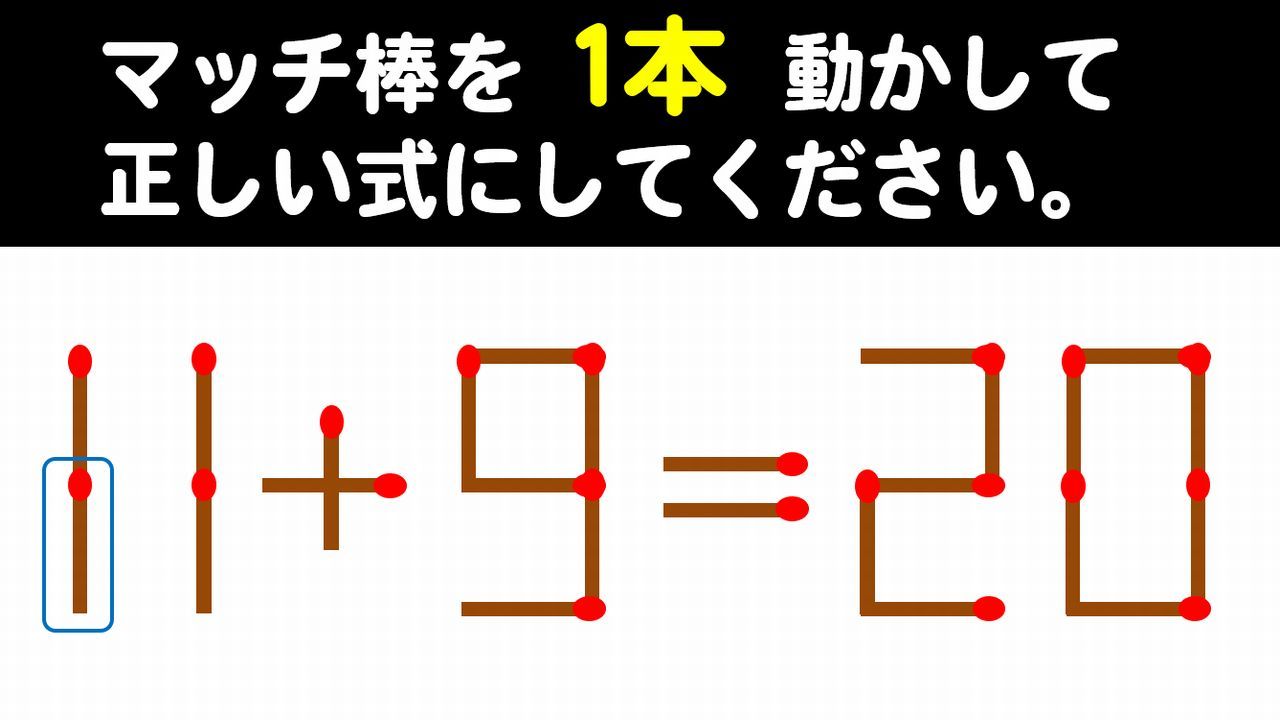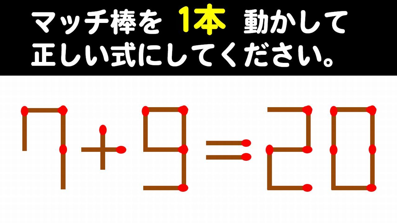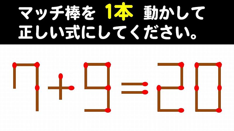 もう1問、こちらもYouTubeでアップロードしている問題ですが、マッチ棒を1本だけ動かして正しい等式にする問題ですが、解けますでしょうか?