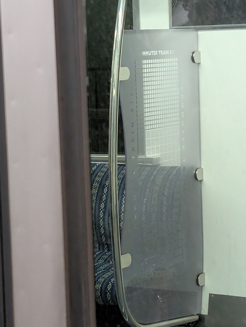 すると、以前制作したポリカーボネートの袖仕切りが使われている電車に乗ることができました!
