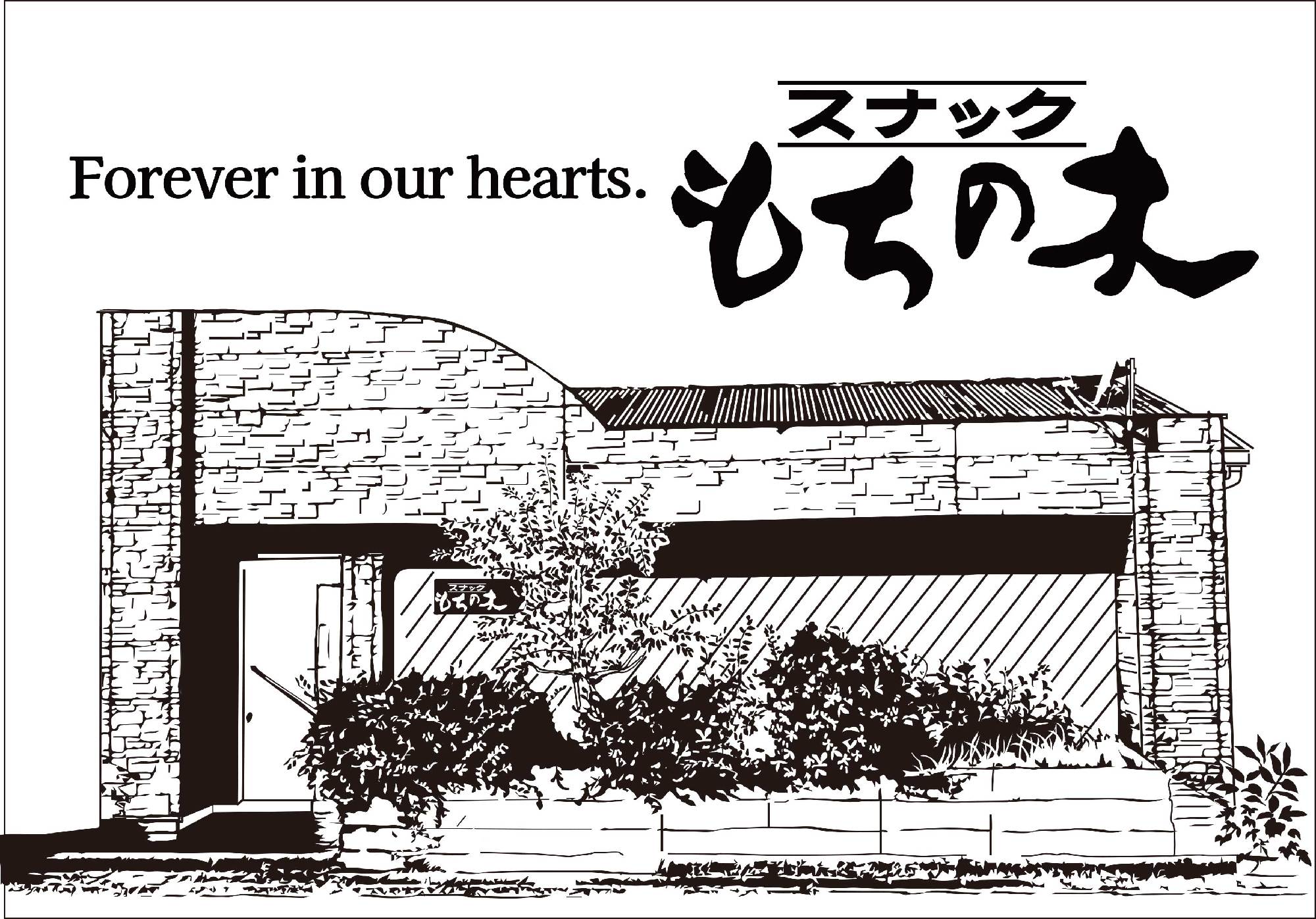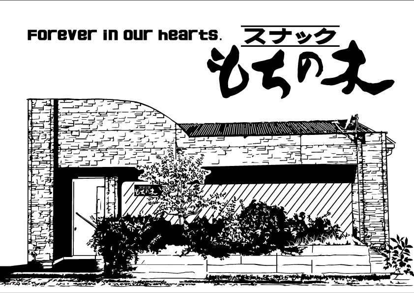 店名にもなっている「もちの木」を主役に、外観写真をもとに描き起こしたイラストを鏡面に刻んだ一点もの。