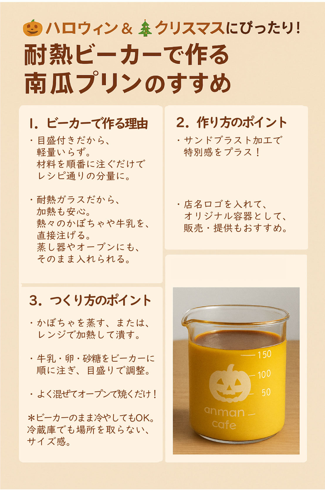 ハロウィン&クリスマスにぴったり!耐熱ビーカーで作る南瓜プリン