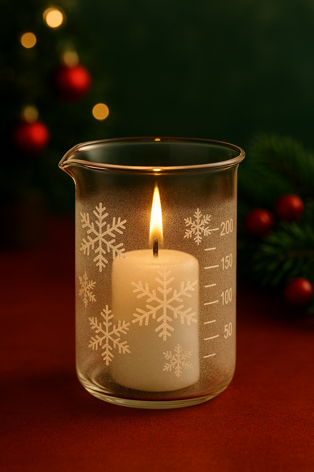 「実験室のビーカーが、クリスマスのキャンドルホルダーに変身!