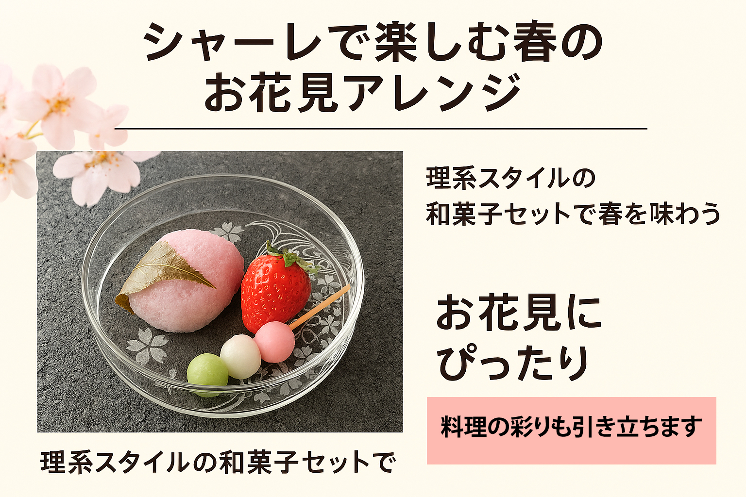 シャーレで楽しむ春のお花見アレンジ|理系スタイルの和菓子セット