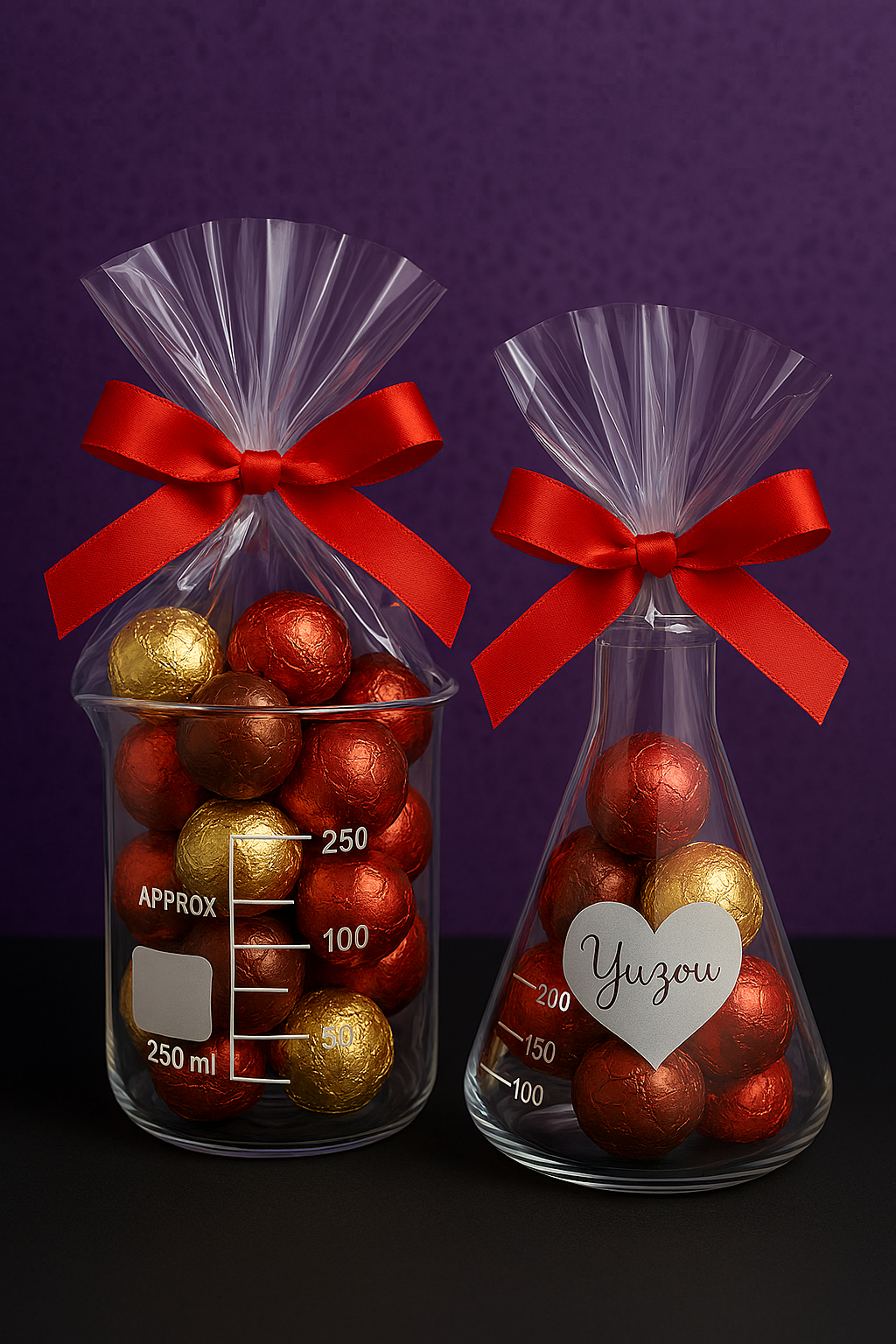 実験器具風のデザインは、サイエンス好きな方へのプレゼントにもぴったり。