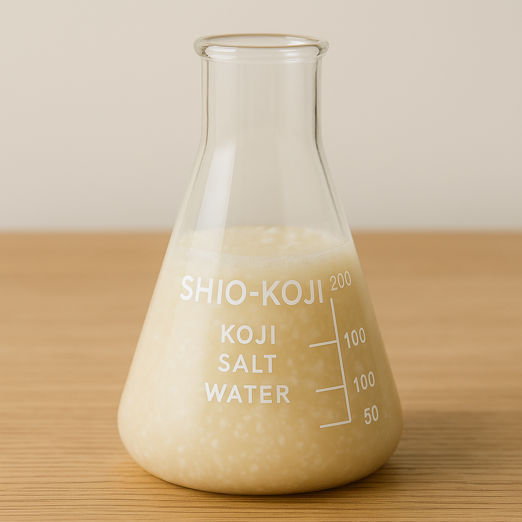 三角フラスコの塩こうじは、暮らしをそっと楽しくしてくれる存在。