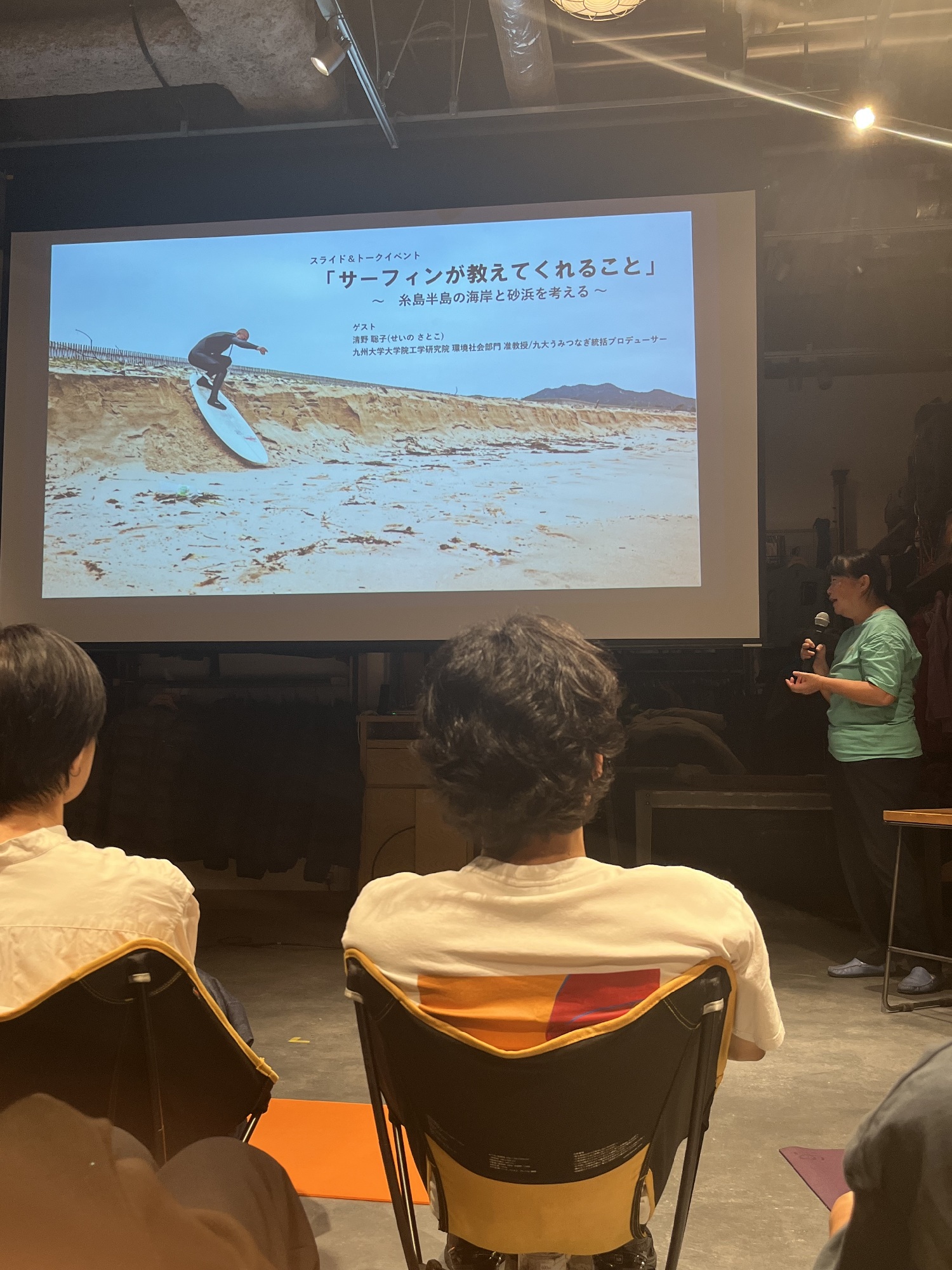 糸島でサーフショップ(a.s.s.a store)を営む鈴木藍策さん、九州大学清野聡子准教授によるトークセッション