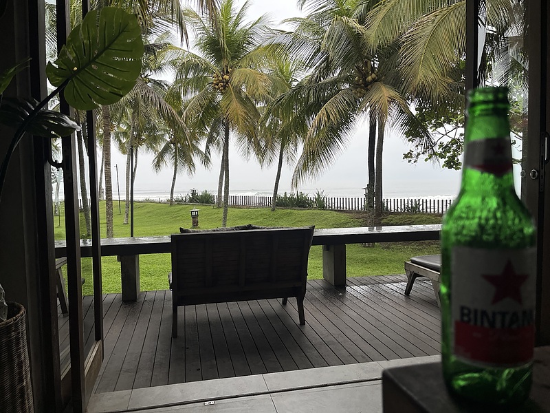 〈2025年9月 まだ薄暗いなか宿の庭から波チェック〉