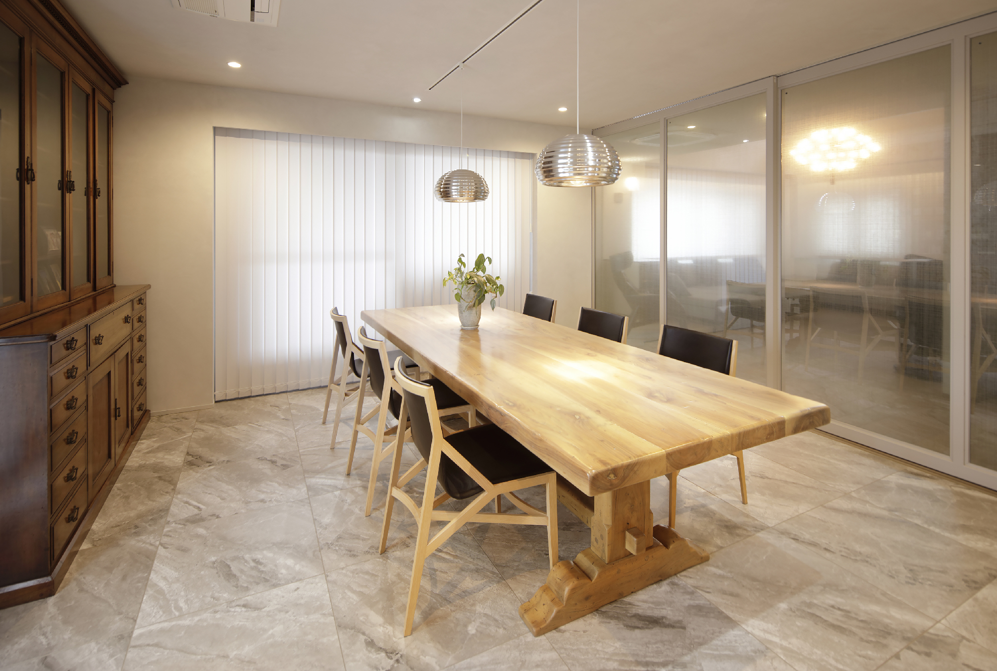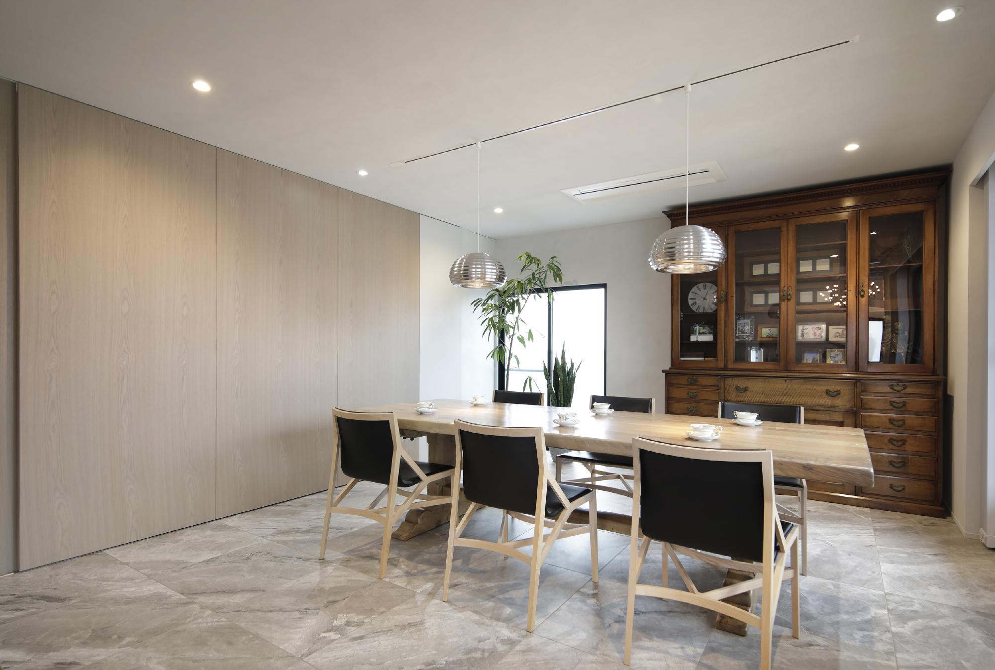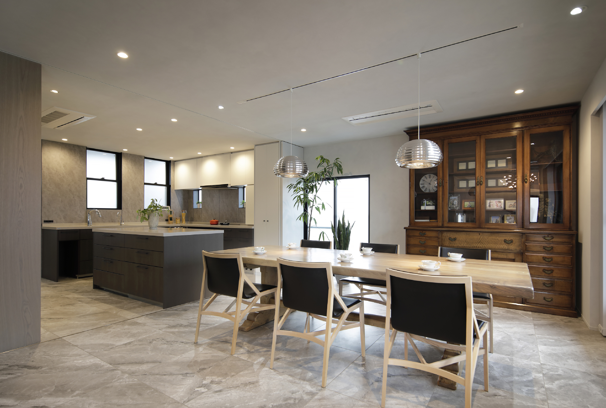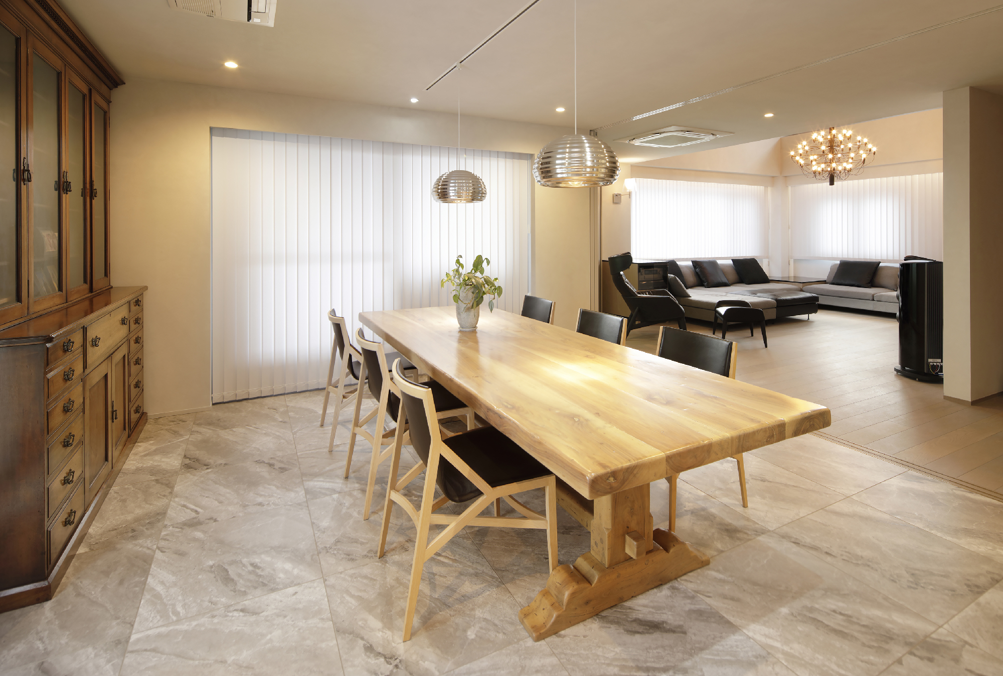 冬の寒さに悩まされていたRC造3階建て住宅のリノベーション。 吹き抜けのあるリビングは寒さのため使われず、家族は小さなダイニングで過ごしていた。 そこで、断熱性能の向上と床暖房の導入、空調計画の見直しにより、温かく快適な住空間へと再生。 3階全体をワンルーム化し、必要に応じて開閉できる可動間仕切りを設け、快適性と省エネを両立した。 回遊できるキッチンは家族が自然と集まる場に。 使われていなかった3mのテーブルも再生し、暮らしの中心に戻した。 家族が集まり、笑顔が生まれる時間と空間をもう一度この家に。 そんな思いを込めたリノベーションです。