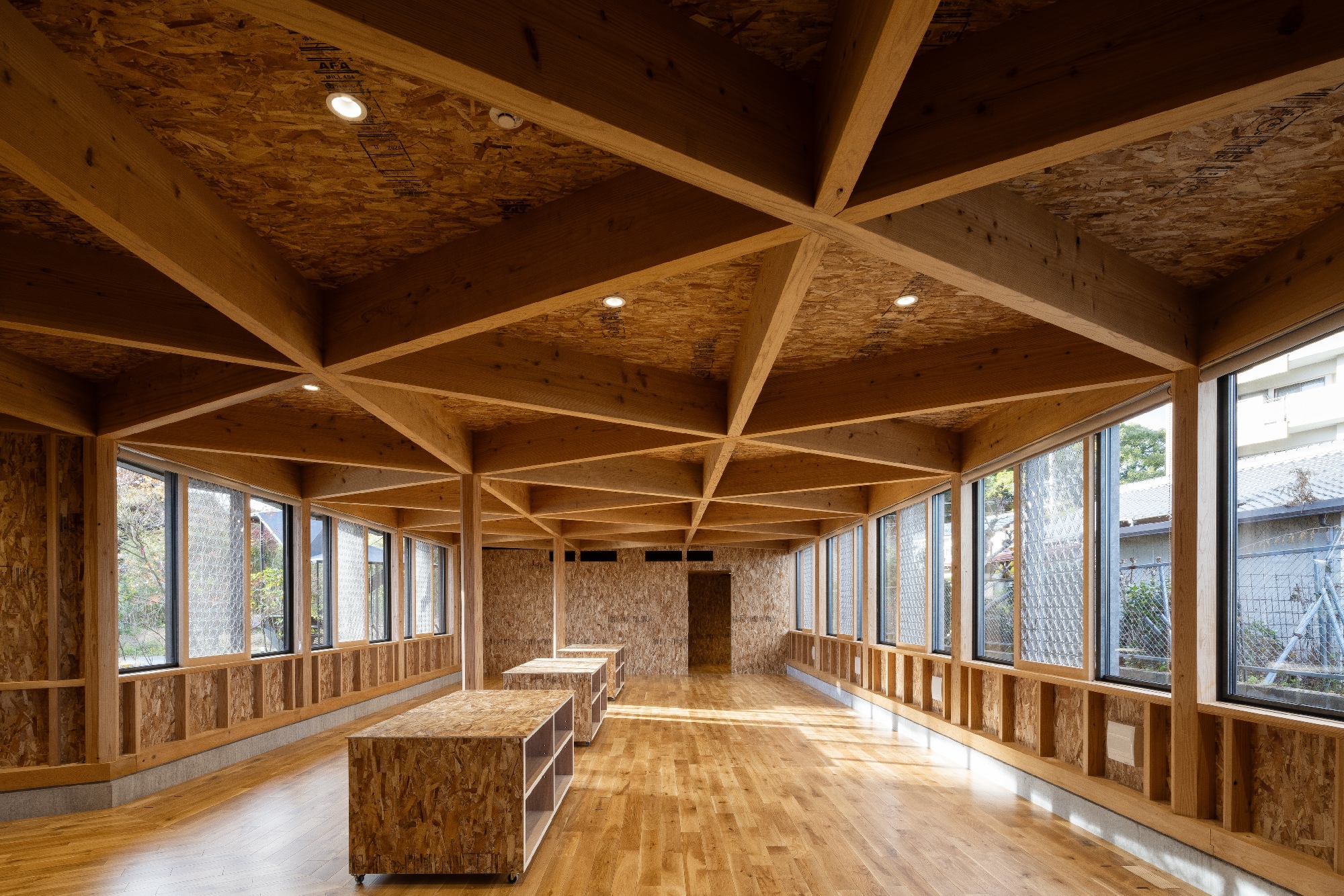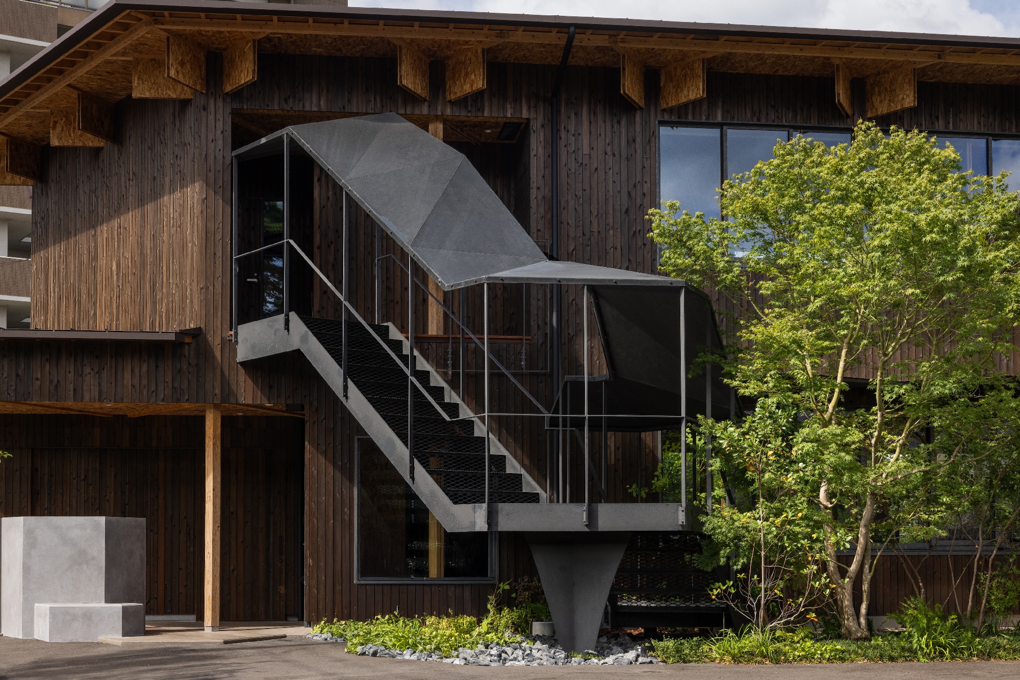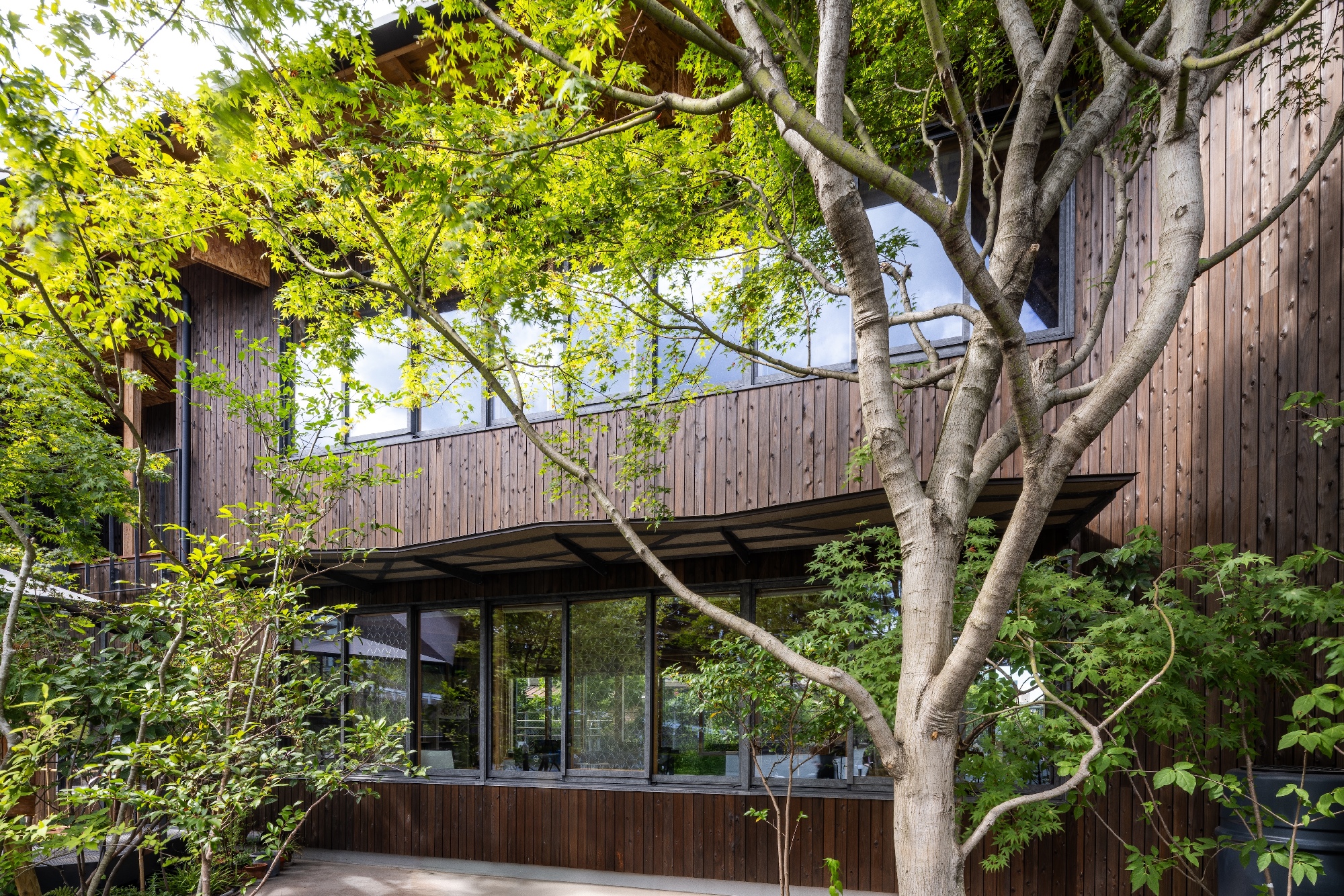 住宅街に建つオフィスとして街になじむ建築としました。 内部もどこか住宅を思わせる雰囲気をまとっています。 取り組みとしては 風量調整建具を開発し窓をあけても書類が飛ばない執務室を計画したり、絶滅危惧種シルビアシジミを呼び込むための植栽計画も行いました。 他、雨水再利用、雨水浸透側溝、浸透アスファルト、雨庭(洪水抑制対策)などさまざまな取り組みを行っています。