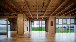 2階のオフィスについても、周囲の田園風景がよく見える開口の取り方や、明るさの感じ方がちょうどよく、落ち着いて仕事ができる空間になっています。