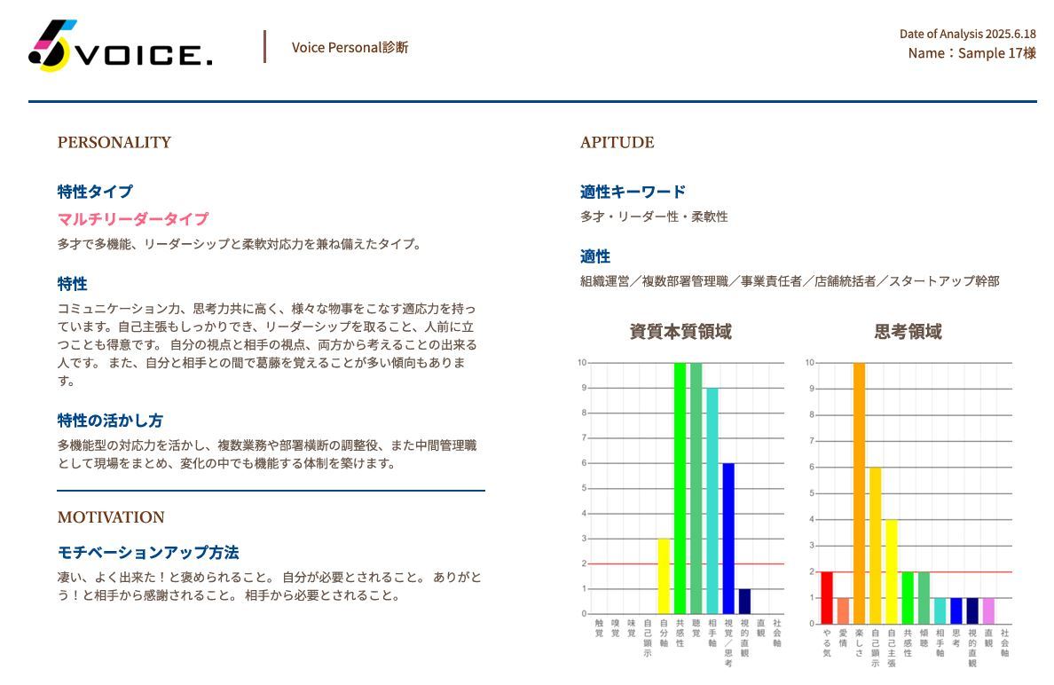 その人の特性・適性・ストレス傾向・セルフケアのヒントまでを可視化する、まったく新しいクラウド型・音声分析ソリューションです。