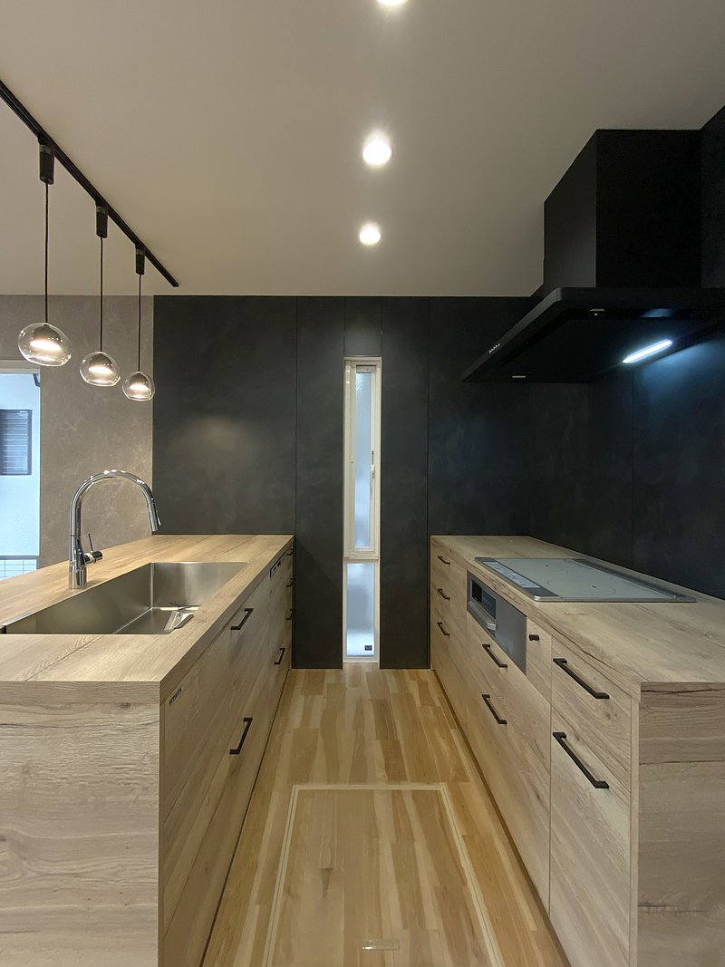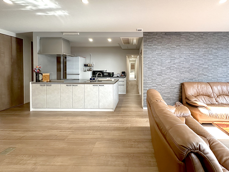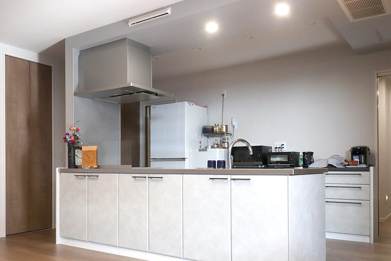 また、開放的なレイアウトは空間を広く感じさせ、来客時には明るく居心地のよい雰囲気を演出。料理をする人だけが孤立することなく、みんなが集うリビングの延長として使えるのも嬉しいポイントです。