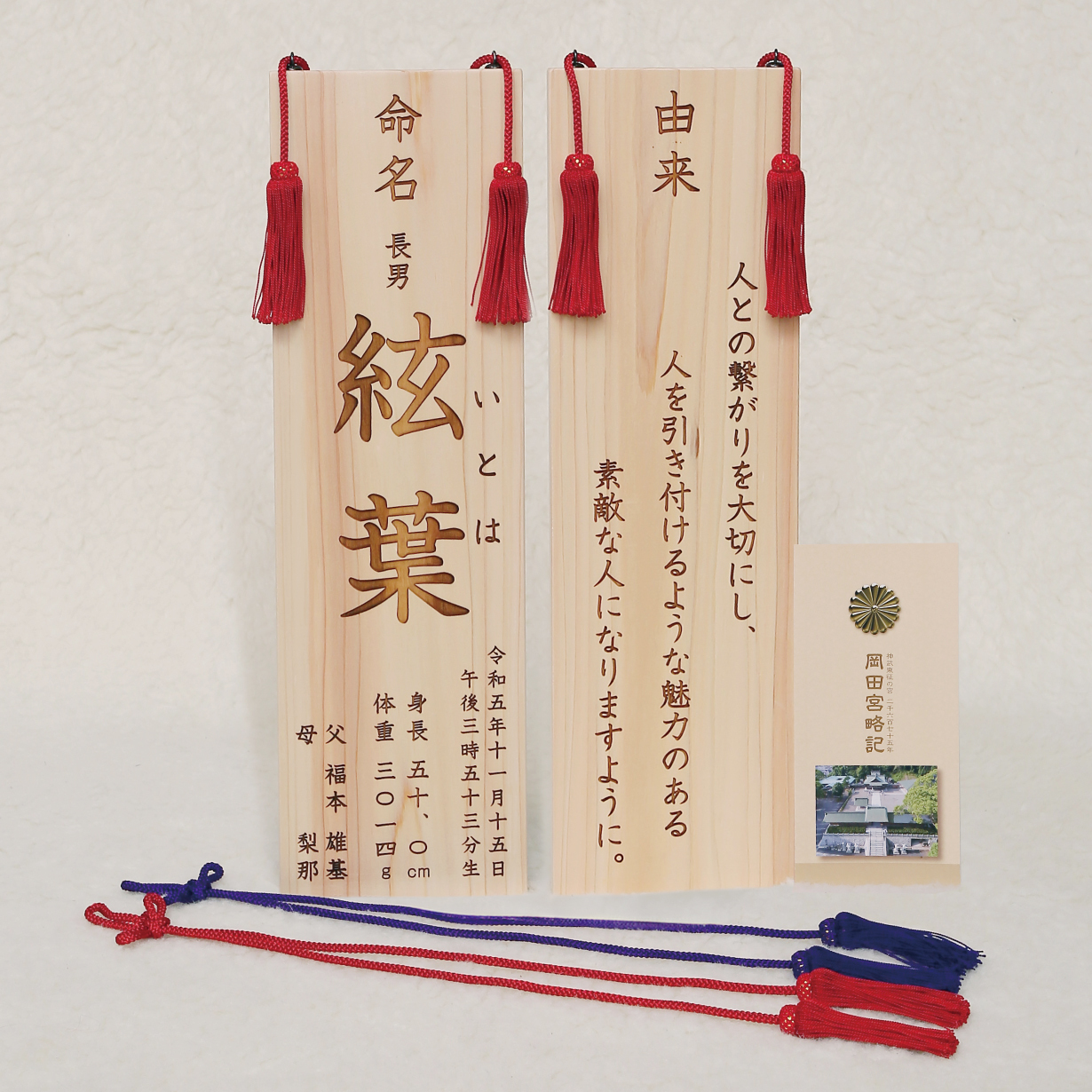 生まれた時の身長と同寸の命名書に、名前の由来を刻み込みます。