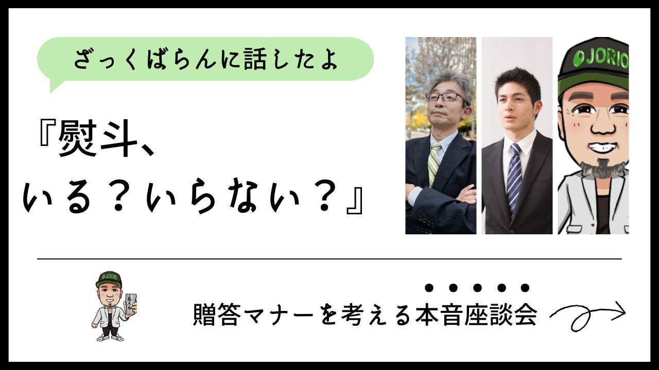 今回は、福岡の名入れギフト専門店JORIOプロと、架空の登場人物による座談会形式で、「熨斗、本当に必要?」という問いに向き合います。
