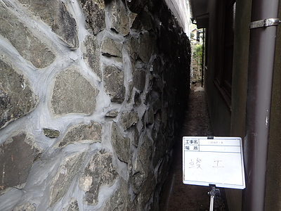 場所によっては極端に狭い場所にある石積みが危険な状態となっている場合があります。