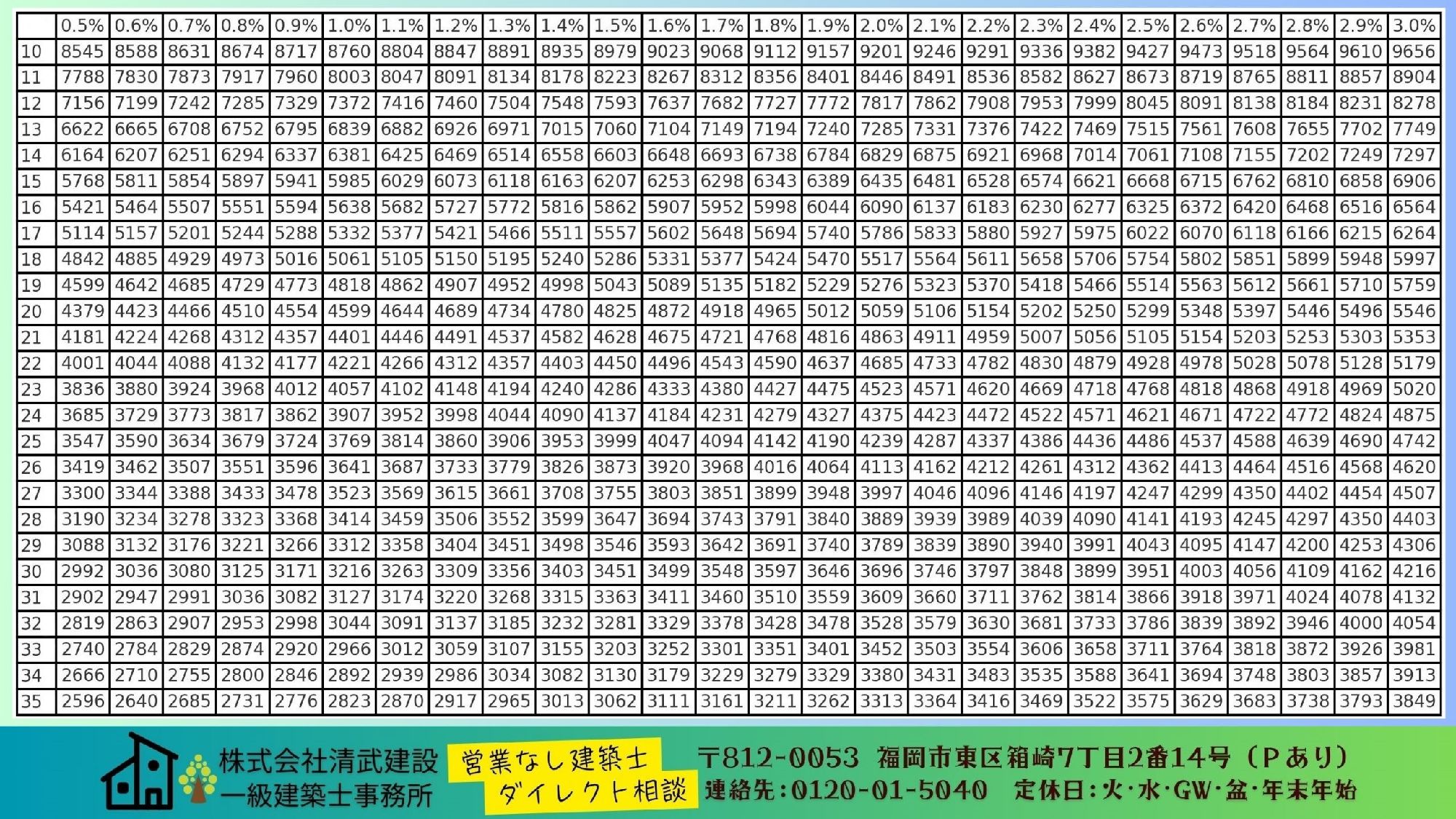 【借入額】×【早見表の数字】÷100万=月々の返済額