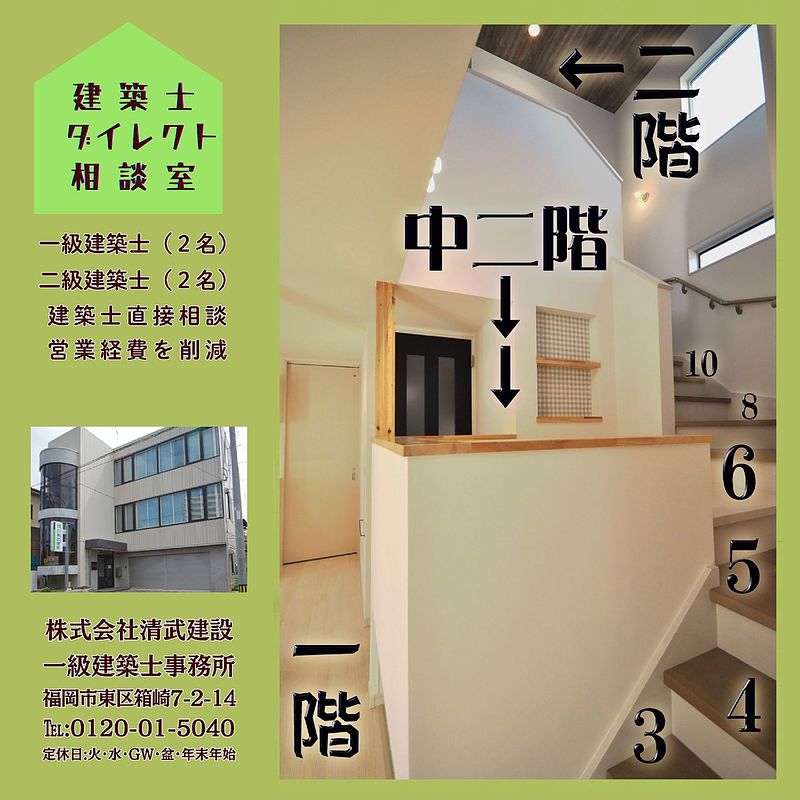 1階より2階へ階段で移動する場合、中二階を経由する為、移動距離が若干長くなります。